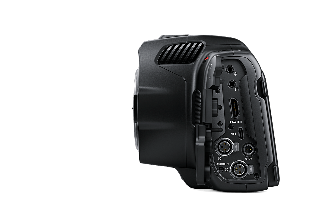 Los modelos Blackmagic Pocket Cinema Camera ofrecen prestaciones de alta gama en un diseño compacto y portátil. Fabricados a partir de un compuesto de policarbonato y fibra de carbono, disponen de una empuñadura multifunción con todos los controles necesarios para grabar y ajustar el valor ISO, el balance de blancos y el ángulo de obturación. El sensor ha sido diseñado con el propósito de reducir el ruido térmico, a fin de lograr sombras más definidas y una sensibilidad más alta. Por otro lado, la pantalla de 5 pulgadas permite lograr un enfoque preciso a una resolución de 4K o 6K. Además, estas cámaras incluyen una cubierta extraíble para el compartimiento de la batería, cuatro micrófonos a prueba de golpes, una montura de gran resistencia y un altavoz integrado.