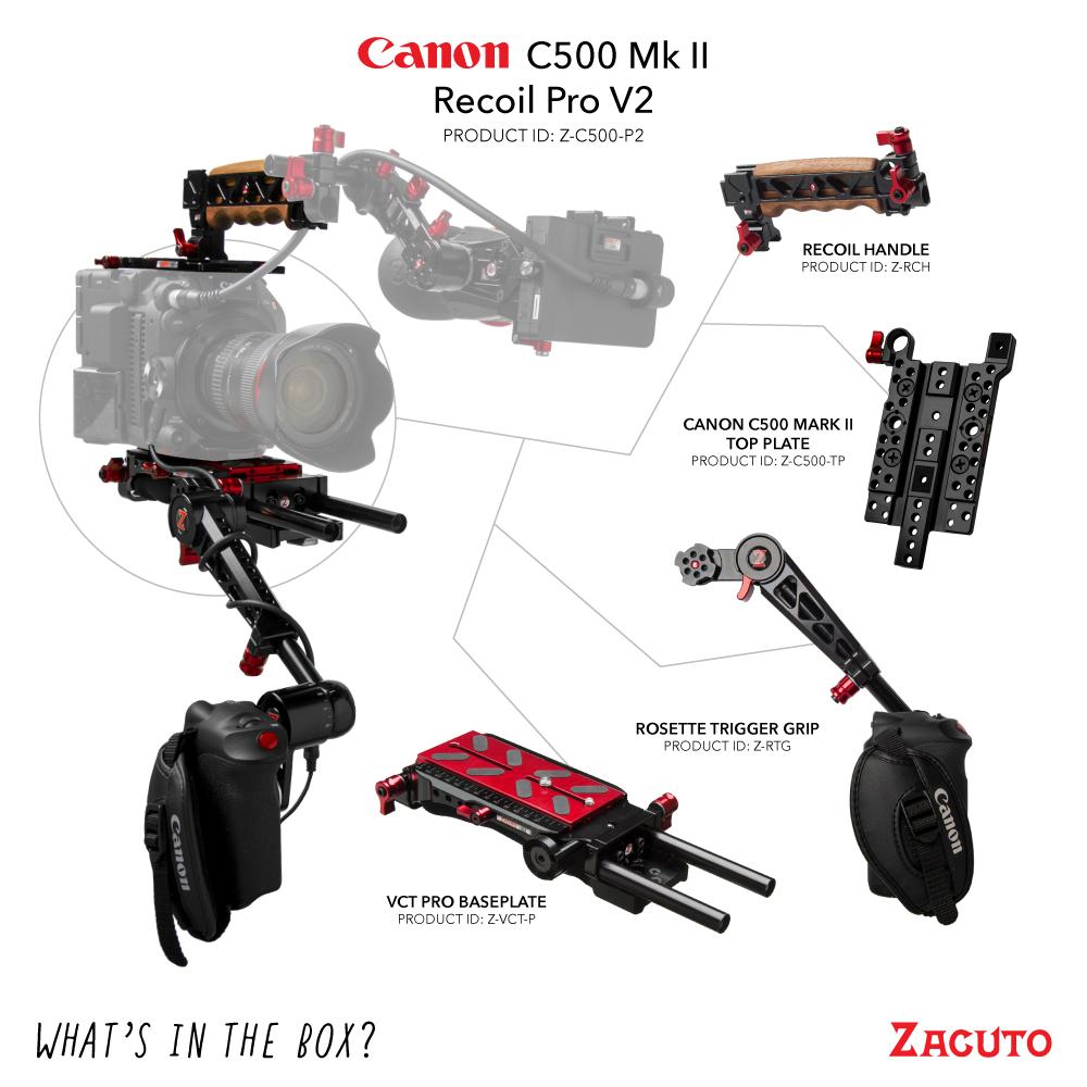 La Canon C500 Mark II Recoil Pro es una plataforma de hombro diseñada específicamente para la Canon C500 Mark II.
